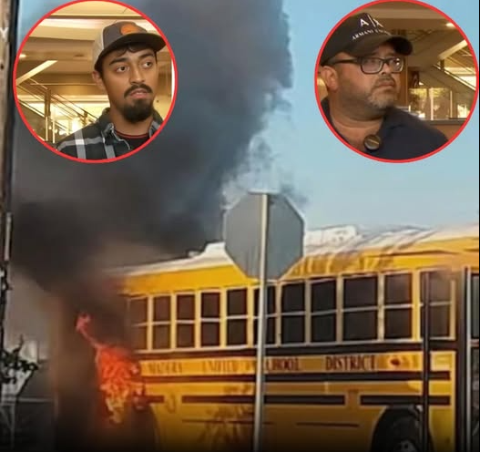 They alerted the driver and began evacuating the students inside the bus, moving through thick plumes of smoke to reach the children in the back rows. Moments later, the bus was completely engulfed in rapidly growing flames.