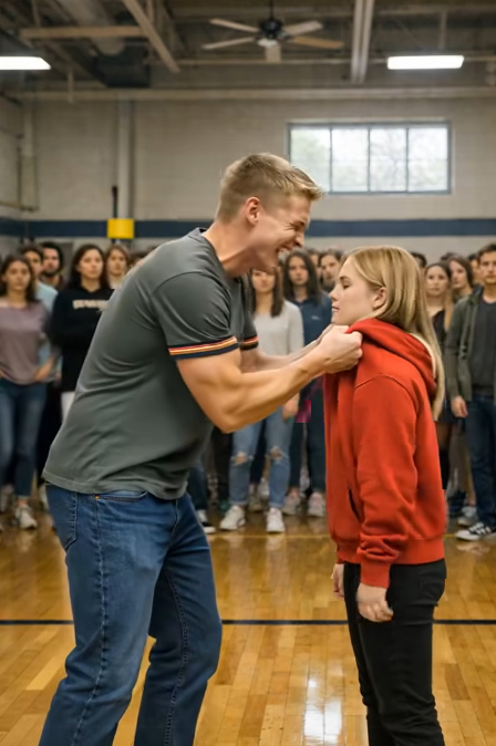 The high school gymnasium was thick with the suffocating energy of a public execution. It was the kind of noise that defines adolescence—a chaotic mix of sharp laughter, jagged whispers, and the rhythmic squeak of sneakers on polished hardwood. Students had gathered in a dense circle, forming a suffocating ring of spectators. In the digital age, confrontations were no longer private moments of cruelty; they were content. Dozens of smartphones were already raised, lenses focused, ready to capture the imminent downfall of the school’s most invisible student.