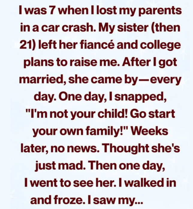 The sound of tires screeching and the sterile smell of a hospital ward cut my world in half when I was seven years old. My parents and the only life I had ever known were gone in one night. At the age of 21, my sister Amelia was a young lady with a fiancé, college courses, and a bright future full of predictable happiness. She folded that future away without hesitation. She became the person who stood between me and the abyss, signed the guardianship papers, and packaged our sorrow into cardboard boxes.