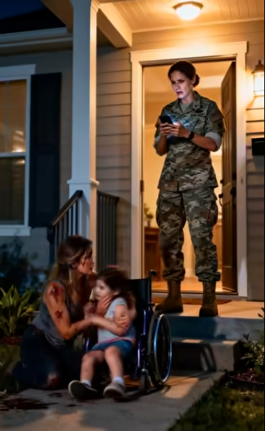 I unlocked the deadbolt and cracked the door. She was barely standing, rain-soaked hair plastered to her face, one eye already swelling shut. Her little girl, Khloe—eight years old, wheelchair-bound, hands trembling on the armrests—was wedged against her side.