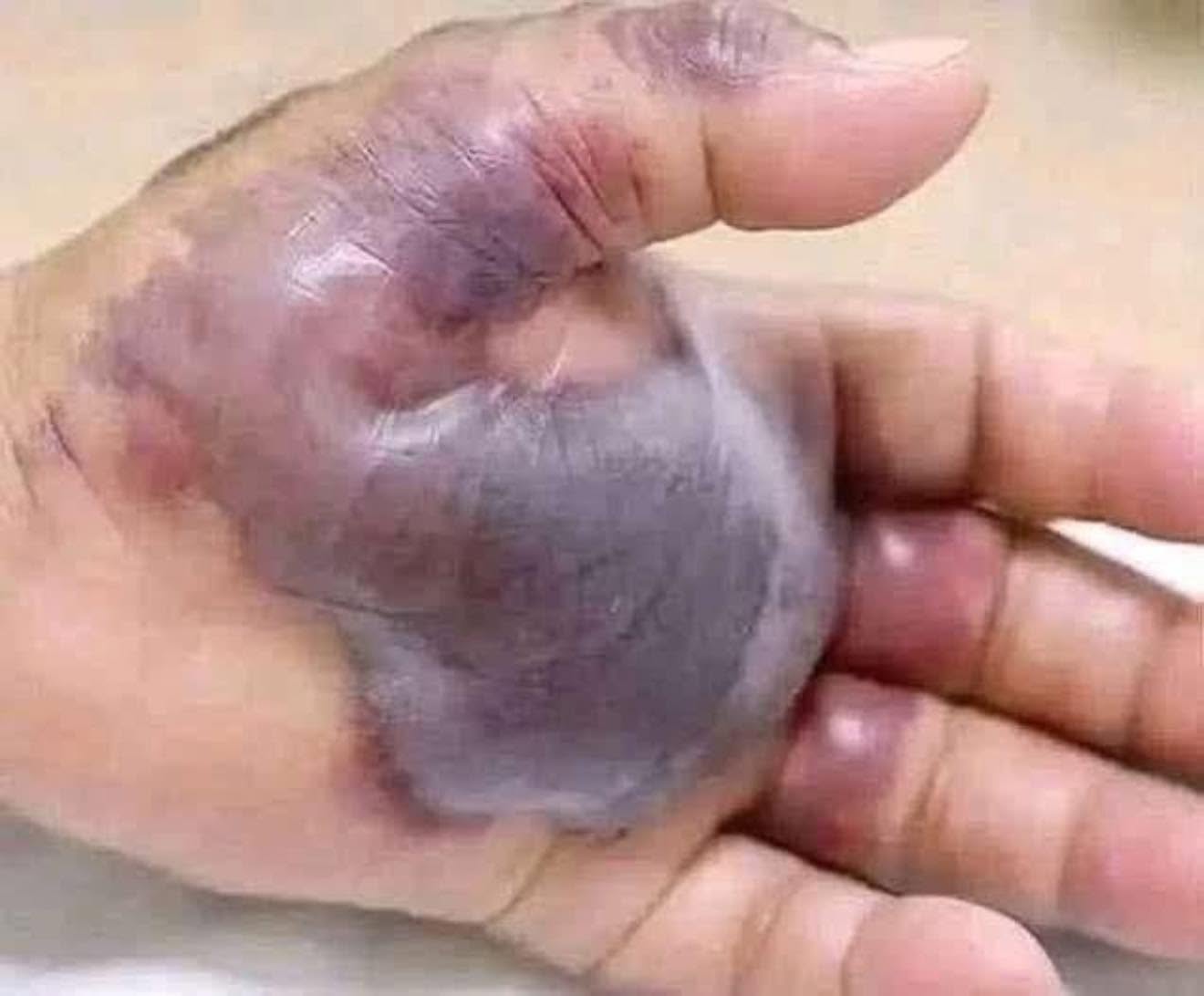 By the time the patient reached the hospital, the hand was almost unrecognizable. Fingers were swollen beyond recognition, joints stiff and immobile, and the once-soft skin had hardened and darkened in ominous patches. The pulse in the hand was faint, and there was a growing concern that the infection could spread to the arm, the bloodstream, or even become life-threatening within hours. Surgeons and infectious disease specialists immediately convened, knowing that early intervention was crucial. Infections like this require aggressive treatment: intravenous antibiotics, surgical debridement to remove dead tissue, and constant monitoring to prevent systemic complications.