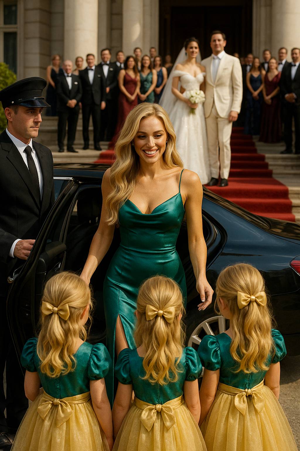 The chauffeur opened the door with precision. First, three girls in matching yellow dresses stepped out, hand in hand, their curls bouncing with every step.