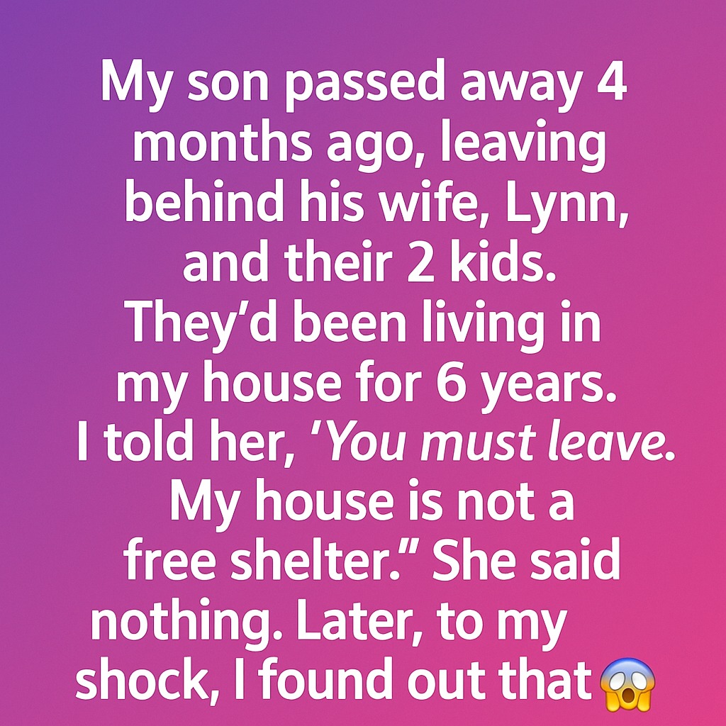 For six years, my house had been alive with laughter, footsteps, and the comforting chaos of life shared together. My son and his partner, Lynn, along with her two children, filled every room with warmth and energy. Our home wasn’t just a structure made of bricks and mortar—it was the beating heart of our family. It was where we celebrated birthdays, weathered storms, and created memories that felt timeless. But when my son passed away, that heartbeat faltered and the house suddenly felt cold and empty. The silence that followed was suffocating and thick, wrapping around me like a heavy blanket I couldn’t shake off. Every sound, every photograph on the walls, every object scattered across the rooms became a painful reminder of him. Grief has a strange and cruel way of turning the most familiar things into sources of unbearable pain.
