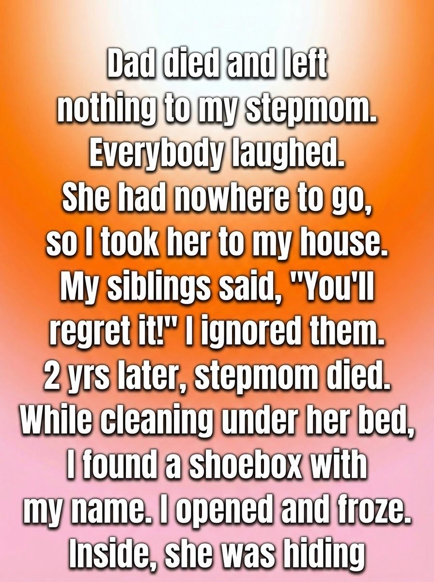 Years later, after her quiet death—unannounced, almost humble in its departure—I found the shoebox. It had been hidden under her bed, tucked beneath an old blanket, almost as if she wanted to ensure it would only be discovered by someone who truly looked. My name was written across it in her careful hand, a gentle promise that something inside belonged to me, even if the world around her did not. Holding it in my lap, I felt an unfamiliar mixture of grief, wonder, and reverence—as if this box were a key, unlocking secrets, affections, and truths that had been quietly waiting for me.