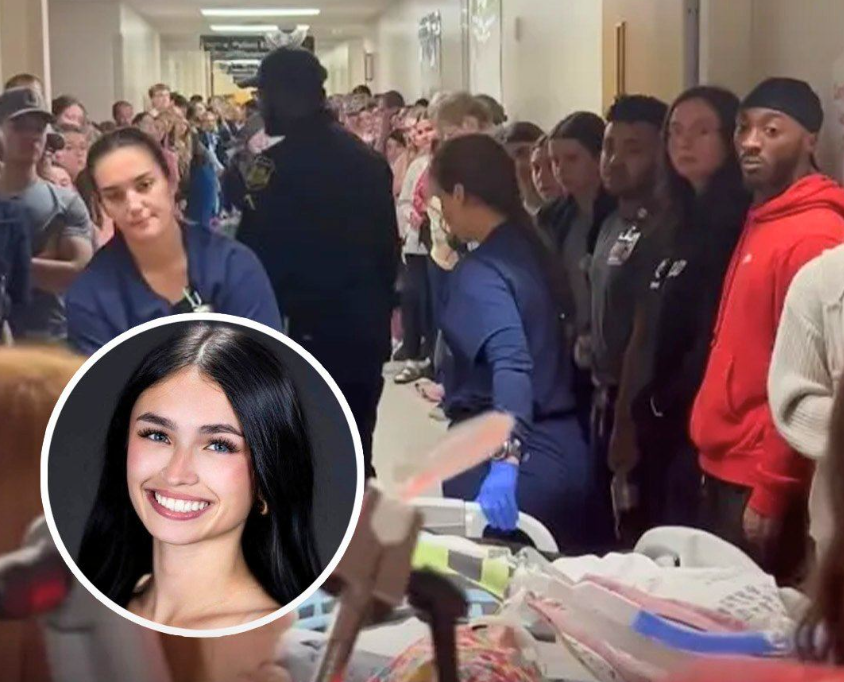 A touching video captured a profoundly moving moment as hundreds of students, teachers, friends, and community members came together to honor 18-year-old Kimber Mills, a beloved cheerleader whose final act of kindness saved multiple lives and left a lasting impact on everyone who knew her, as well as those she would never meet. The footage shows a hallway filled with people standing shoulder to shoulder, many holding back tears, paying tribute to a young life marked by generosity, joy, and a deep desire to help others.