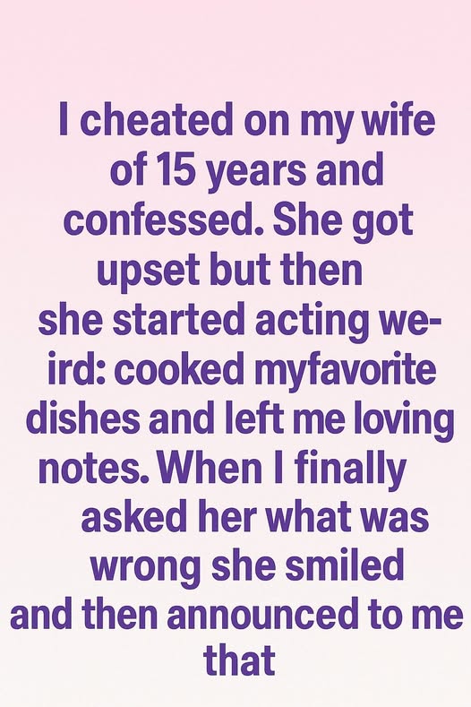 I didn’t understand it then. I thought maybe it was shock, denial, or some temporary numbness that would wear off in the morning. But in the days that followed, her reaction only deepened the confusion. She started cooking my favorite meals again — the comfort dishes from our early years. She tucked little handwritten notes around the house, wrapping one around my coffee mug that said, You’ll need strength today. She asked if I needed anything before leaving for work, her tone kind but distant, like someone tending to a stranger she still cared for.