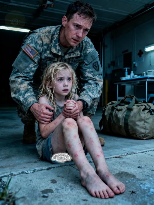 Without a second thought, I carried her straight to the base clinic. The medic’s expression immediately darkened when he saw her condition—dehydrated, malnourished, covered in bites and bruises. He worked quickly but carefully, whispering reassurances while his hands moved efficiently. Sophie clung to me the entire time, refusing to let go, her small fingers gripping my sleeve like a lifeline.