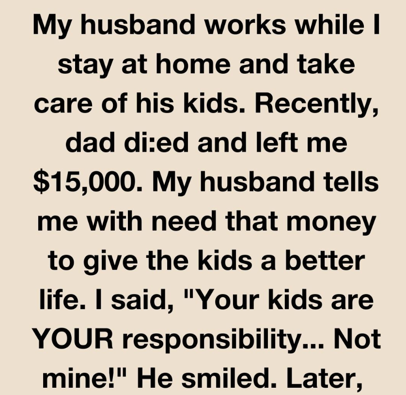When his lawyer called, I expected something sentimental—a keepsake maybe, his old watch or a box of letters. Instead, Dad left me $15,000 in cash. No strings attached. Just mine.