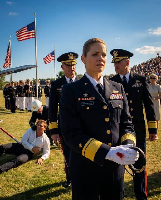 Before anyone could properly react, my stepbrother Ethan broke through the line of order, rushing forward without hesitation. His movement disrupted the ceremony instantly, pulling attention in every direction at once. I barely had time to process what was happening before the situation escalated further, and in the confusion, I felt a sudden sharp impact as the ceremonial saber was knocked against my hand. Pain shot through me, immediate and disorienting, but the louder force in that moment was not physical—it was the silence that fell over the crowd. Dozens of eyes locked onto the scene as security personnel moved quickly to contain Ethan and restore control. Everything around me felt suspended, as if time itself had slowed to observe what would happen next. I stayed exactly where I was, because that was what training had drilled into me: do not panic, do not react emotionally, assess the situation, and maintain position no matter what unfolds around you.