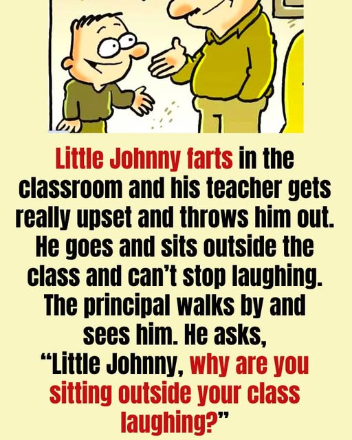 Finally, between chuckles, Johnny managed to explain, “I farted in class… and the teacher got so mad that she threw me out!”