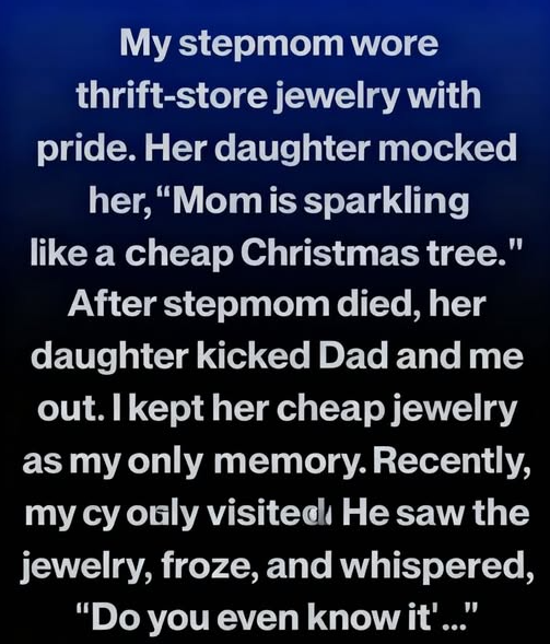 My stepmother had a presence that couldn’t be bought, borrowed, or faked. She wore confidence the way some people wear designer labels—effortlessly, without asking permission. Her jewelry was never expensive, never sourced from luxury boutiques. Every necklace, bracelet, and brooch came from thrift stores, flea markets, and forgotten corners of secondhand shops. Bright plastic beads, cloudy glass stones, tarnished chains. Yet when she walked into a room, she looked regal.