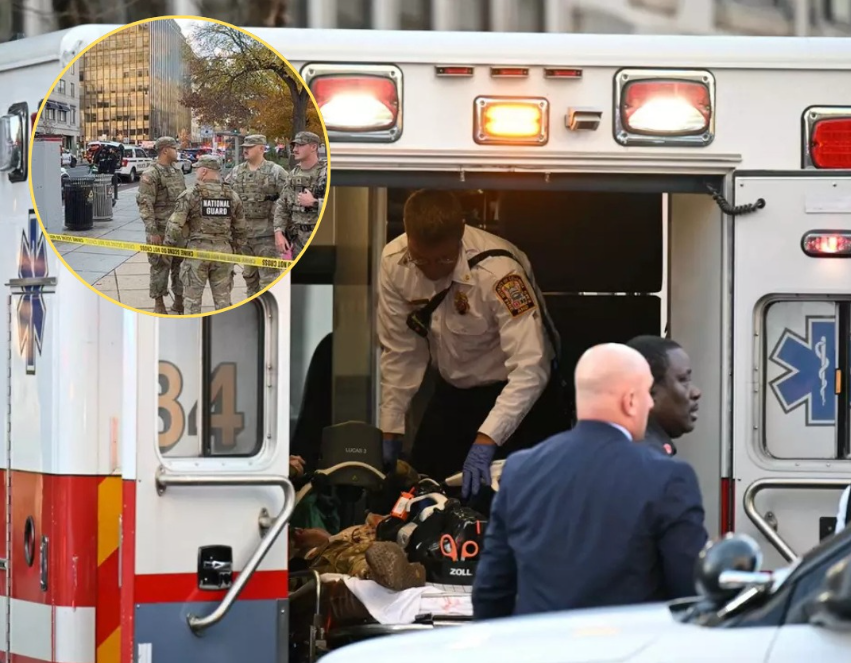Two National Guardsmen lie critically wounded, their uniforms bloodied and their faces pale with shock, just steps from the heart of American power. Sirens wail endlessly through the streets, emergency lights flicker across government buildings, and a city once humming with routine has frozen in collective terror. Barricades spring up like steel walls of protection, officers shouting orders over the din, and the nation watches helplessly as breaking news flashes across every screen. The White House, normally a symbol of calm authority, has slammed into lockdown. Armed personnel swarm the perimeter, scanning every street, alley, and doorway. Flights are halted. Public transportation slows to a crawl. For countless citizens—commuters, tourists, residents alike—time stretches thin as fear coils in every corner. And the question on everyone’s mind pulses through every headline, every social media post, every emergency broadcast: what happened at Farragut West? And what does it mean for a nation already tense, already on edge, already fragile?