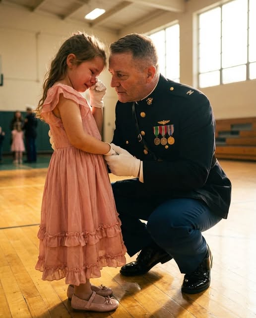 Then, just when it felt like the sadness might win and we might quietly slip out before the evening ended, everything changed in an instant. The gym doors swung open, and a group of uniformed service members entered together, moving with precision but carrying warmth and care in their presence. The atmosphere shifted immediately; eyes turned, whispers filled the room, and a sense of reverence took hold. One of the service members knelt down to my daughter, speaking to her with gentle kindness and a respect that was both comforting and humbling. He explained that they were there to support her, to honor the memory of her father, and to remind her that she was not alone. In that moment, the weight of the evening began to lift, replaced by a wave of connection and love that neither of us expected.