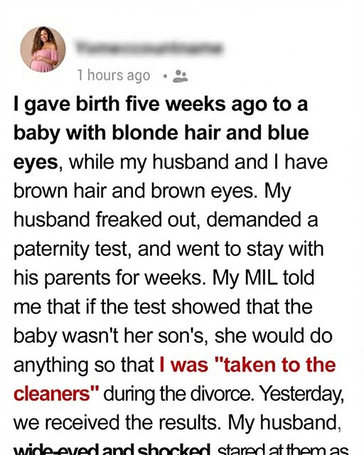 I tightened my hold on my daughter without thinking. “Babies change. Doctors tell you that. Eye color, hair color—it’s normal.”