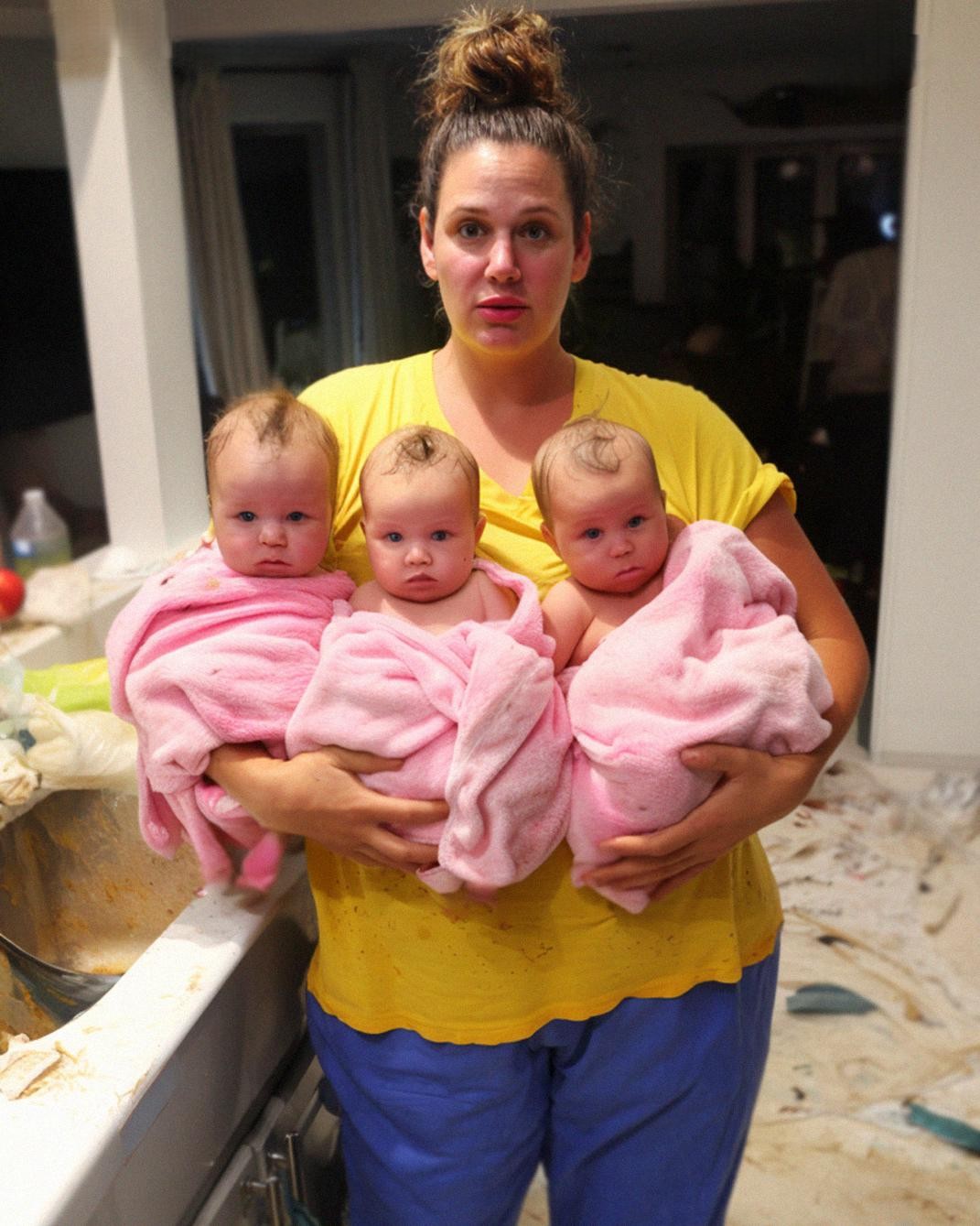 Three weeks later, home was chaos wrapped in tiredness. The babies cried one after another. I smelled like milk and sweat, hadn’t washed my hair in days. My shirt was covered in spit-up, and I was just trying to keep everyone alive.