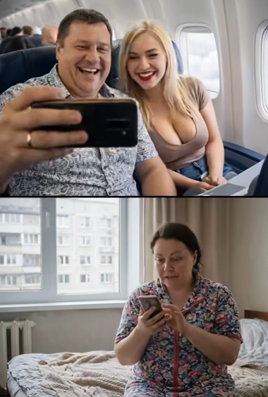 Thirty minutes later, my phone buzzed. A message—a high-resolution photo—arrived from the tarmac of an international airport. Arthur grinned triumphantly beside our young office assistant, half his age, pressing a kiss to her cheek. The caption cut deeper than any knife: “Goodbye, miserable creature. I’m leaving you with nothing.”