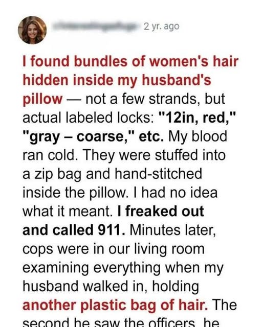 Inside the pillow were small, neatly arranged bundles of hair, tied with care.