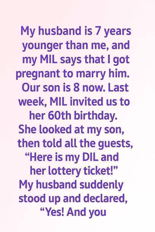 I never thought age would be such a big deal. My husband is seven years younger than me, and while that difference has never mattered to us, it has mattered immensely to his mother. From the very beginning, she made her disapproval unmistakably clear—through small, cutting remarks disguised as jokes, long, calculating glances that lingered just a moment too long, and those loaded silences that said more than words ever could. Every family gathering, every casual visit, seemed to come with the invisible weight of her judgment. I told myself repeatedly that I could handle it, that time, patience, and unwavering love would eventually soften her attitude.