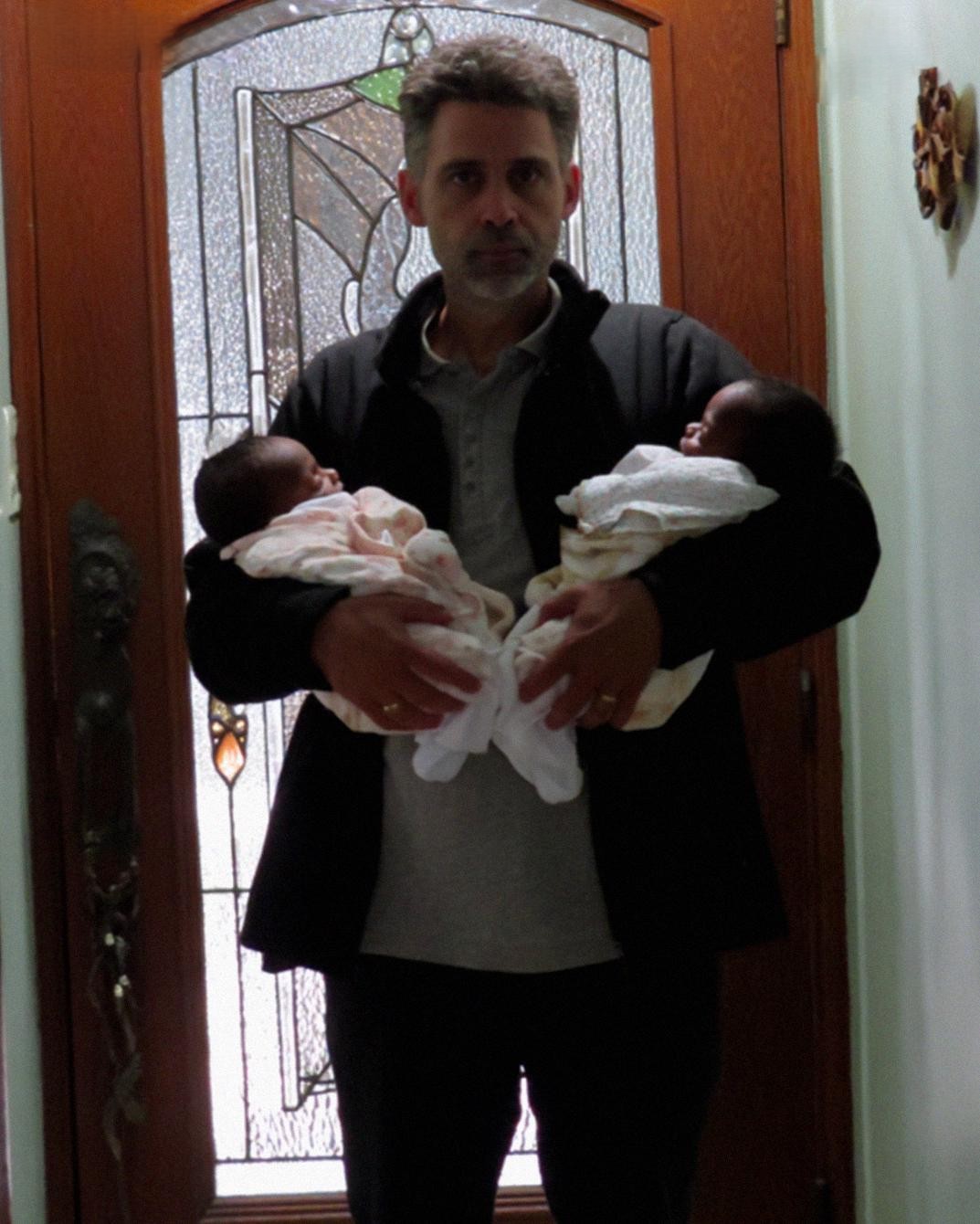 Mark stumbled inside, exhausted, disheveled — and holding two newborn babies wrapped in hospital blankets.