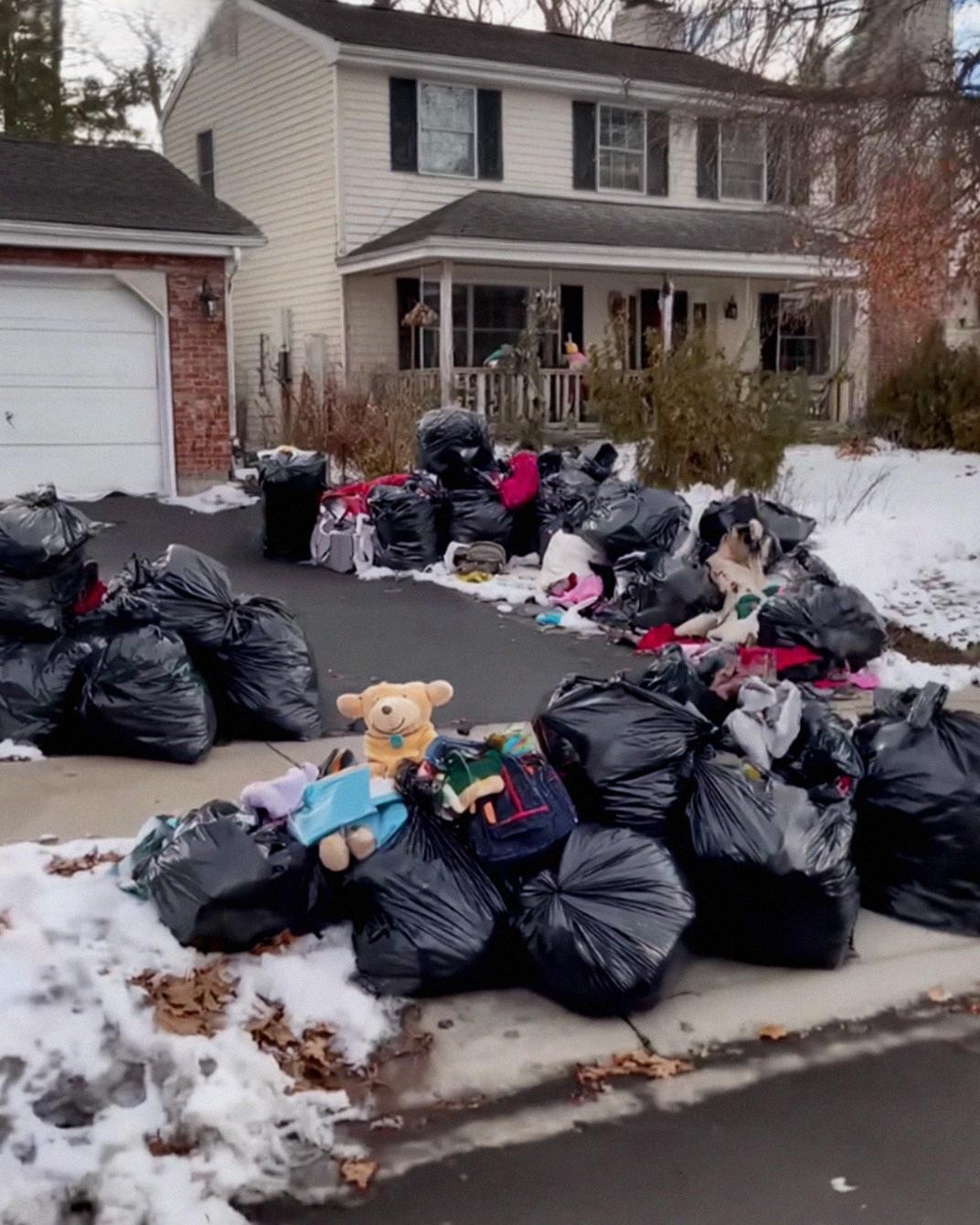 Two days later, I took Emma and Liam out for ice cream, desperate for something normal. When we returned, the sight in front of our house stopped me cold. Our belongings were piled on the curb in black trash bags—clothes, toys, blankets, pieces of a life discarded without ceremony.
