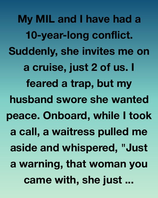 For years, my mother-in-law and I were locked in an unspoken cold war—smiling for the family, but there was tension in every word. Then one day, out of the blue, she invited me on a cruise. Just the two of us. She claimed she wanted to “make peace.” My husband swore she meant it. Despite my gut feeling, I agreed.