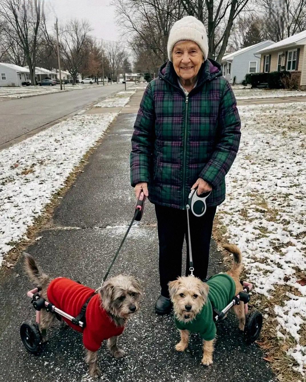Last Tuesday started like any other. Warm air, soft sunlight, half the street in shade. Pearl rolled ahead, inspecting every mailbox like it held a secret just for her. Buddy stayed close by my ankle, his wheels gently bumping the curb.