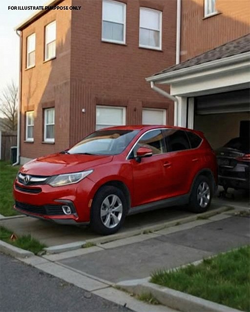 A silver hatchback, parked directly in front of my garage.