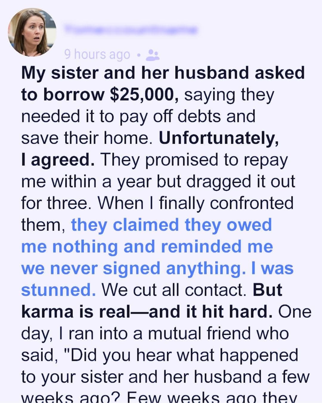 My Sister Betrayed Me Over $25,000… But Karma Had Other Plans