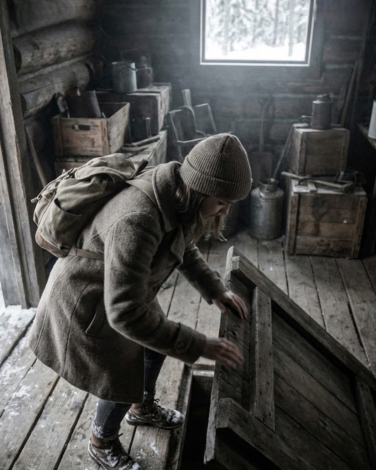 But on the third day of cleaning, my perspective shifted. I stopped seeing the cabin as a victim and began seeing it as an engineer’s daughter. I noticed a single floorboard in the center of the room that didn’t match the others. It was darker, fastened with hand-forged nails, and sounded hollow when tapped. Beneath a dusty, handwoven Native Alaskan rug, I found a rusted iron ring.