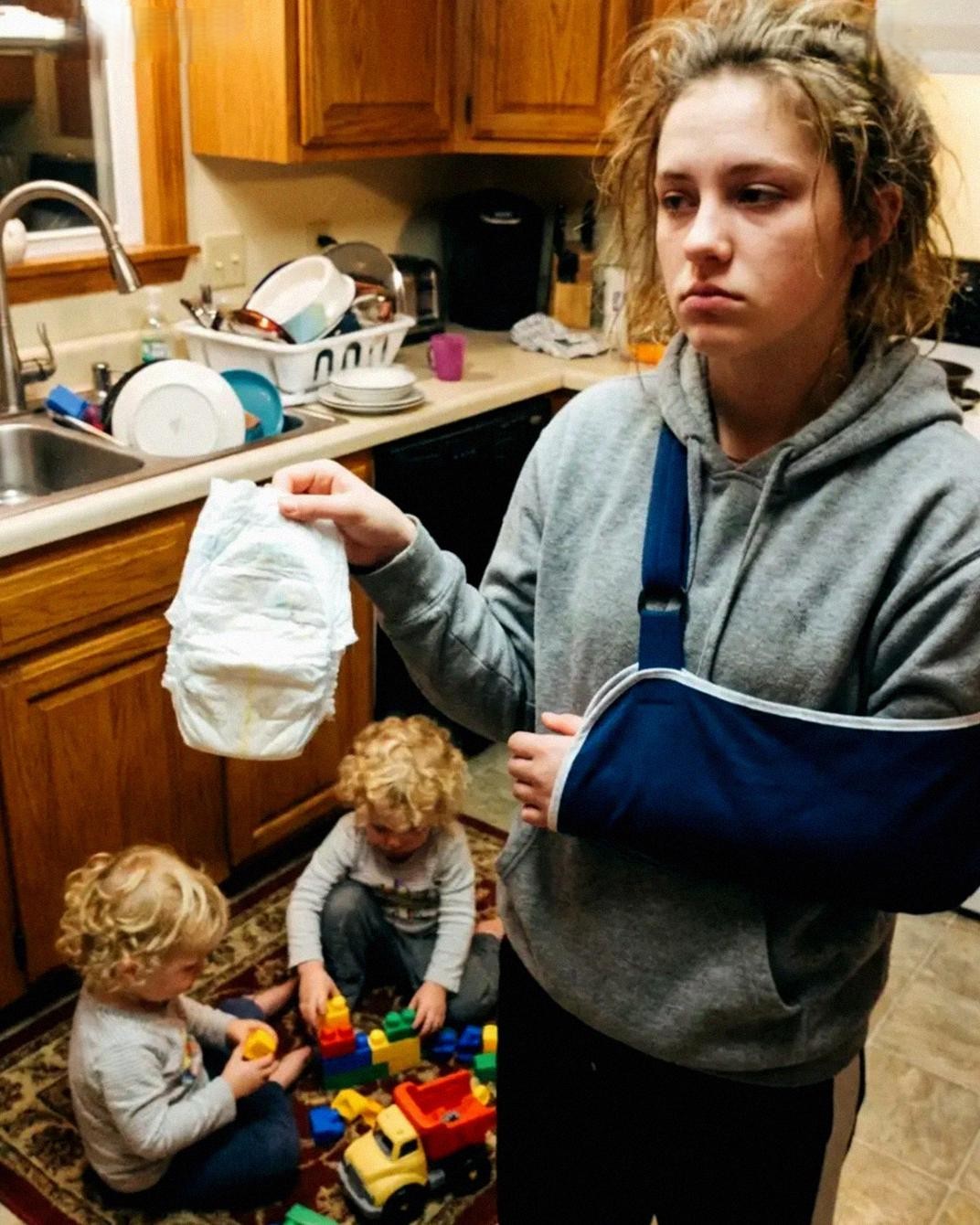 With one arm immobilized, in constant pain, Olivia was left alone with the twins. All day. Every day.