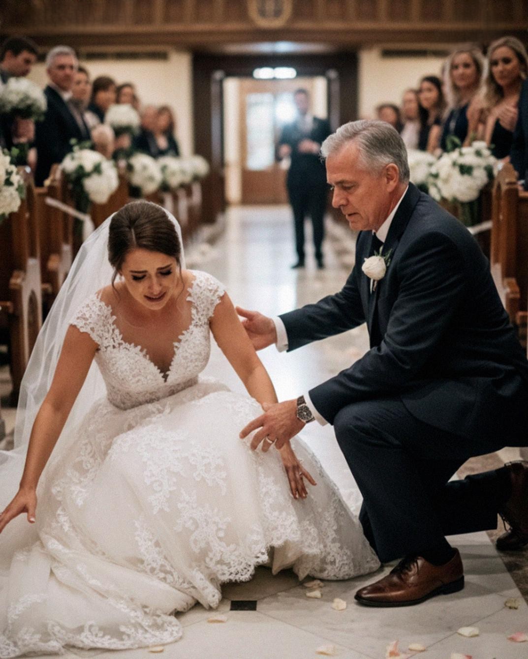 My heel caught. My ankle twisted. My body lurched forward, and I slammed onto the marble floor—palms scraping, knees burning, veil sliding sideways. Two hundred guests gasped.