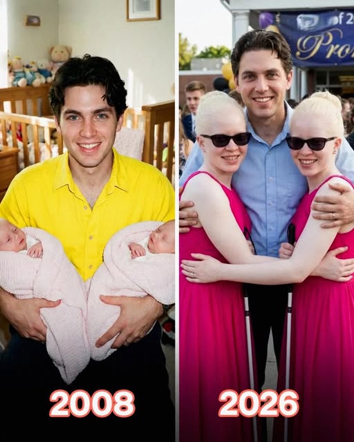 My name is Mark, and a quiet that started on a Tuesday morning defined my life for eighteen years. My youth was essentially finished that day when I woke up to an empty bed and a note on the kitchen counter. Emma and Clara, our newborn twin children, and I had been abandoned by my wife, Lauren. The physicians told Lauren that both children were born blind in kind, regretful voices, but Lauren saw this as a life sentence that she would not accept. The sentence on her note was a jagged scar: she was sorry, she couldn’t do this, and she had dreams. She put herself ahead of two defenseless infants who were unable to see their mother.