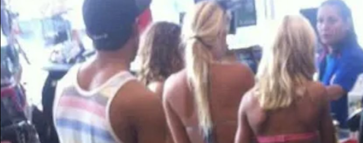 In the digital age, even the tiniest details in an otherwise ordinary photo can capture global attention. Such was the case with a viral image first shared in July 2016, which recently resurfaced and once again sparked conversations across social media platforms. At first glance, the photograph appeared to depict a carefree summer moment: two young women in bikinis standing at a convenience store checkout, selecting drinks and snacks after a day at the beach. Yet, upon closer inspection, one seemingly minor detail transformed the image entirely—a court-ordered ankle monitor secured above the right ankle of one of the women.