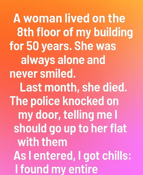 For more than twenty years, the woman on the eighth floor was little more than a shadow in our apartment building. She never smiled, never made small talk, never acknowledged anyone beyond a slight nod. She moved through the halls like someone carrying a lifetime of burdens—head down, shoulders tense, eyes fixed anywhere but on another person. To all of us, she was simply “the quiet lady upstairs.” Not rude. Not hostile. Just unreachable.