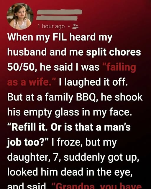 When my father-in-law learned that my husband and I shared household responsibilities—cooking, cleaning, raising our daughter—he chuckled lightly and shook his head. Then he said it, casually, as if it didn’t matter: