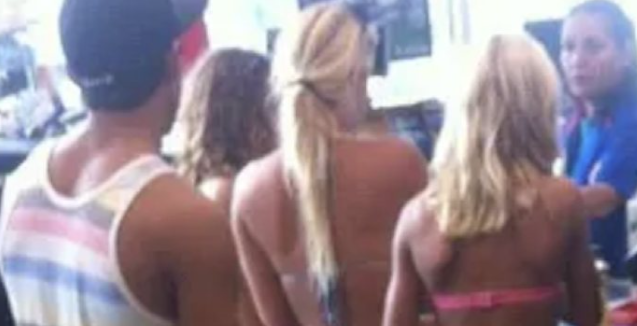 The image appears completely unremarkable at first glance. Two young women are standing at a checkout counter wearing flip-flops and colorful bikinis. The familiar sights and sounds of a convenience store surround them: snack racks, chilled beverages, and the fluorescent hum of a quick-stop store. It appears to be a snapshot taken midway between the car and the beach—a casual stop to gather provisions for a sunny day. But the picture served as a visual riddle. A particular detail started to “turn heads” and spark a flurry of criticism as it transitioned from private feeds to open platforms like Imgur.