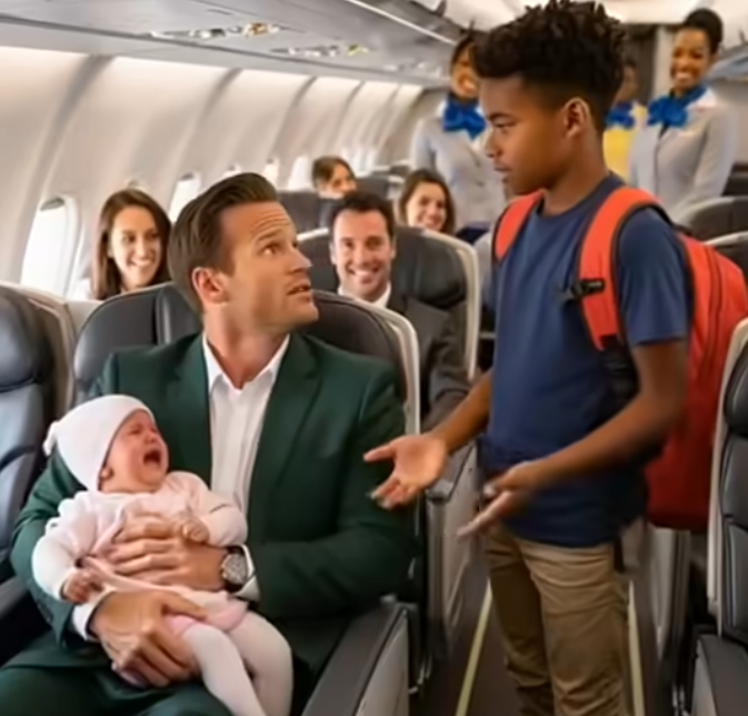 When the plane landed, no one rushed off. They waited for Henry, Nora, and Liam. People touched the boy’s shoulder, whispered thanks, offered smiles. Henry walked behind him with Nora sleeping peacefully, her tiny hand curled around his tie.