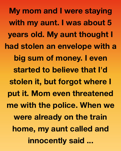 When I was around 5 years old, my mom and I were staying at my aunt’s house. She thought I had stolen an envelope with a large sum of money. I even began to believe I had taken it, but I had simply forgotten where I put it. My mom even threatened me with the police.