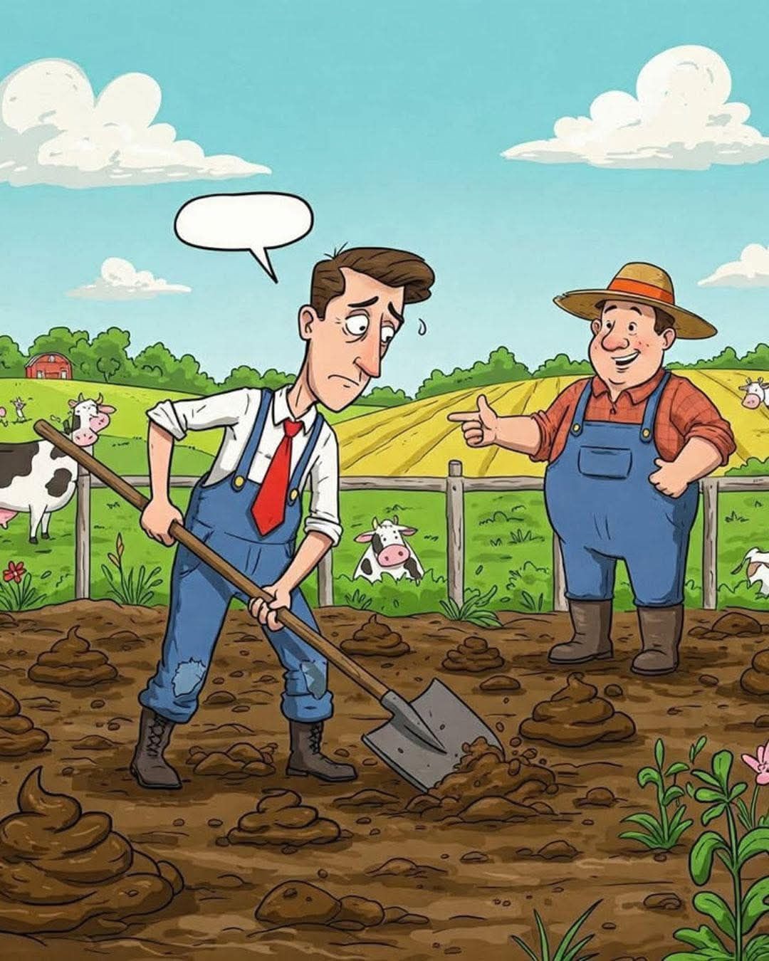 The farmer, incredulous, finally asked, “How is it that you could do all those difficult, messy, and unpleasant tasks, and now you cannot do this simple job?” The manager looked up, his eyes weary but clear, and replied calmly, “Listen, all my life, I’ve been cutting heads and dealing with crap… but now you’re asking me to make decisions.” The farmer laughed, finally understanding the subtle, ironic truth in the man’s words.
