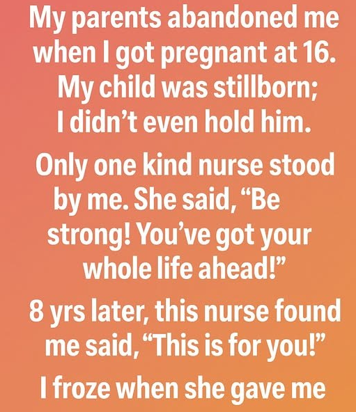 Eight years later, that same nurse appeared in my life again, just as unexpectedly as she had done that day. She found me and handed me a small package, my name written on it in careful handwriting. It was a simple package, but when I saw it, something inside me stirred. My heart began to race, not out of fear, but from a feeling I hadn’t allowed myself to feel in years: hope. After so much time, that lost feeling that had been buried deep within me was now before me.