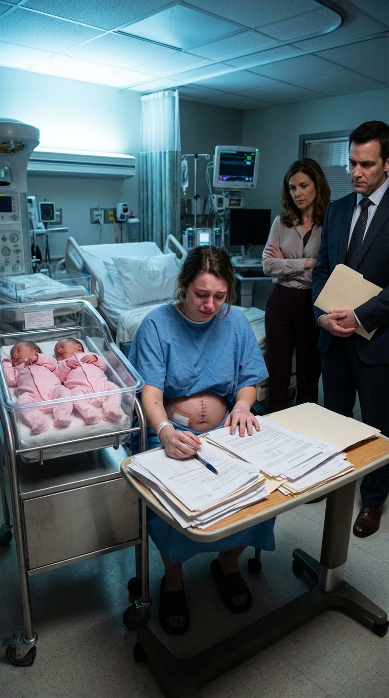 Her hair clung damply to her face, her hospital gown was stained, and her strength was hanging by a thread. Ava stared at the door, her heart pounding with anxious hope. David had stepped out to “get coffee” nearly four hours earlier, right after the final baby was born. He hadn’t held them. He hadn’t even looked at them.
