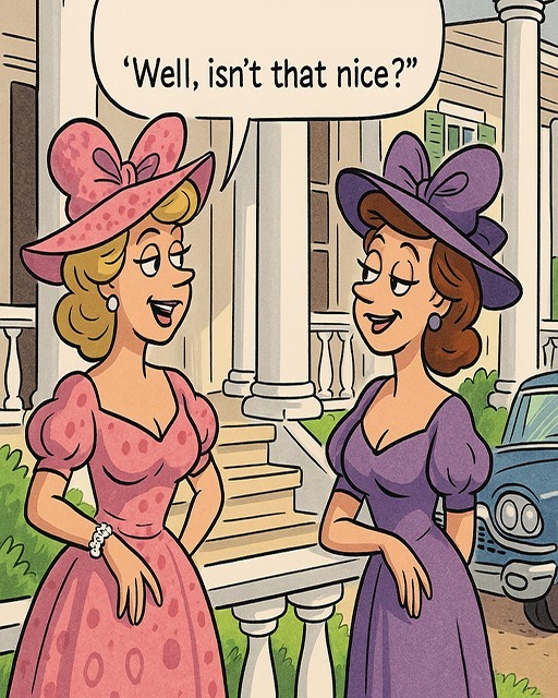 The second lady, fanning herself delicately with a lace hand fan, replied with a gentle smile, “Well, isn’t that nice?”