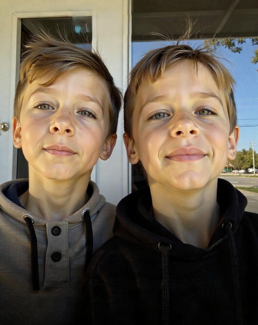 The first boy hesitated, and then another appeared beside him — identical in every way: the same worn clothes, the same untamed hair.
