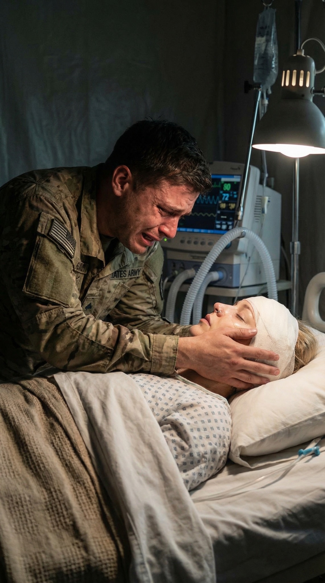 Dominic tried to block me but backed away when he saw my eyes. Inside the room, the ventilator’s mechanical rhythm was the only sound. Tessa’s face was barely recognizable—swollen, wired shut, one eye completely sealed. Part of her head was shaved, stitches running like tracks across her skin. I touched her shoulder—the only place untouched by violence.