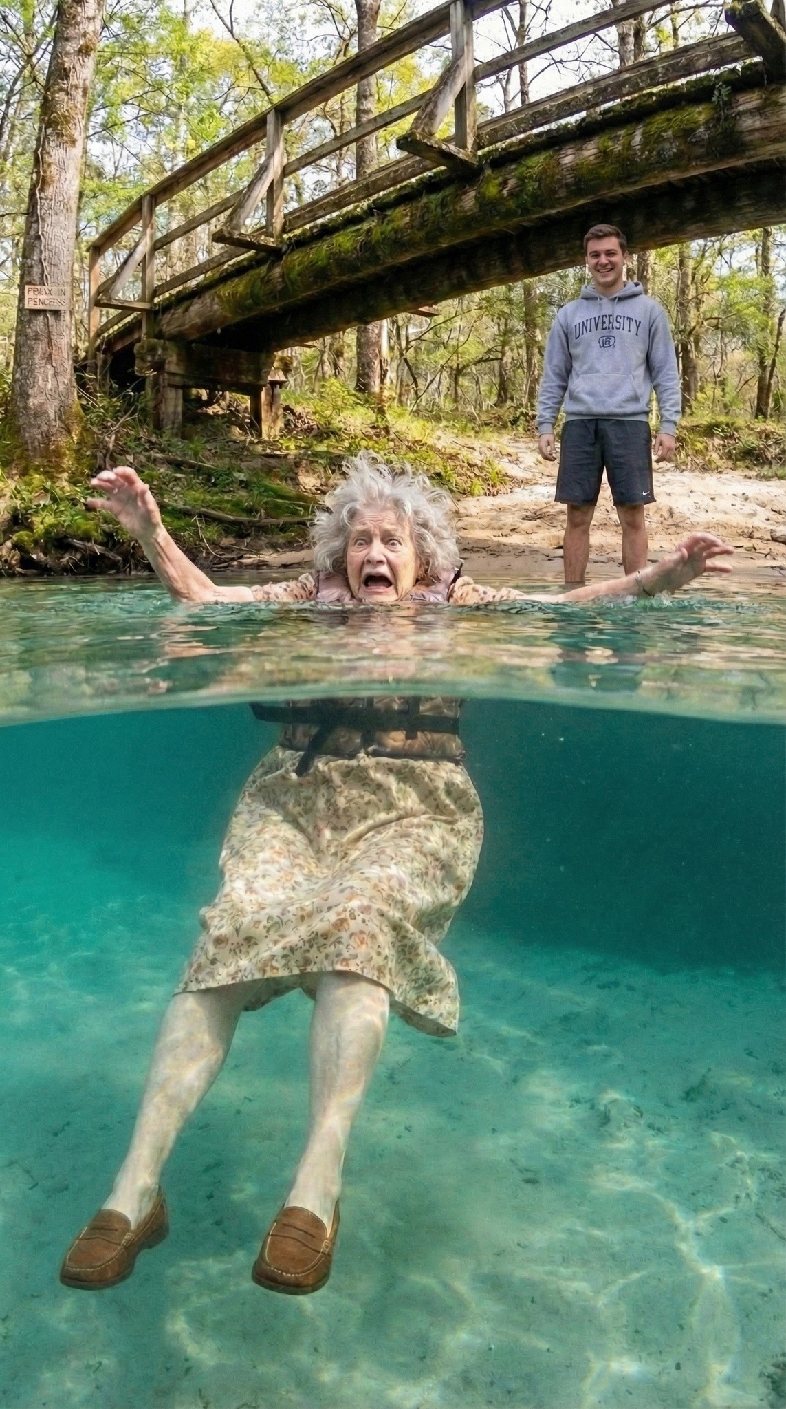 The cold stole my breath instantly. Water rushed into my nose and mouth. My cardigan soaked through, pulling me down. I flailed, panic clawing through me, fighting to reach the surface.