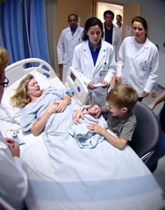 In the corner of the room, their seven-year-old son, Jacob, clutched the stuffed bear he had brought to meet his baby brother. Jacob had spent months anticipating this day, talking to Emily’s belly each night, whispering dreams of shared adventures, Lego towers, bike rides, and bedtime stories. Now, faced with silence and tears, he didn’t understand why the world was crying. His small voice, innocent and trembling, cut through the heavy air. “Can I hold him?”