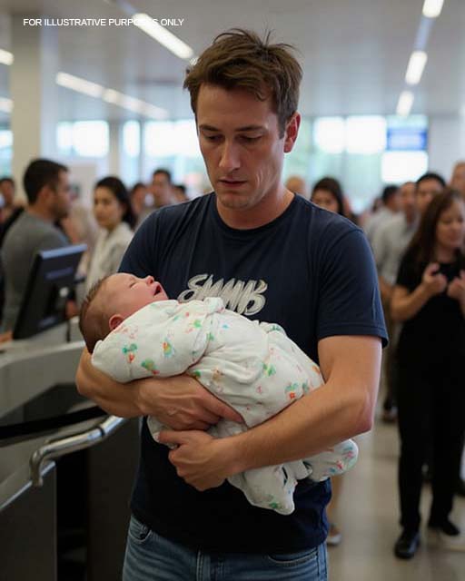 David stood at the airport check-in counter, cradling his newborn daughter, Lily. His eyes were red from exhaustion and grief, yet he tried to stay composed.